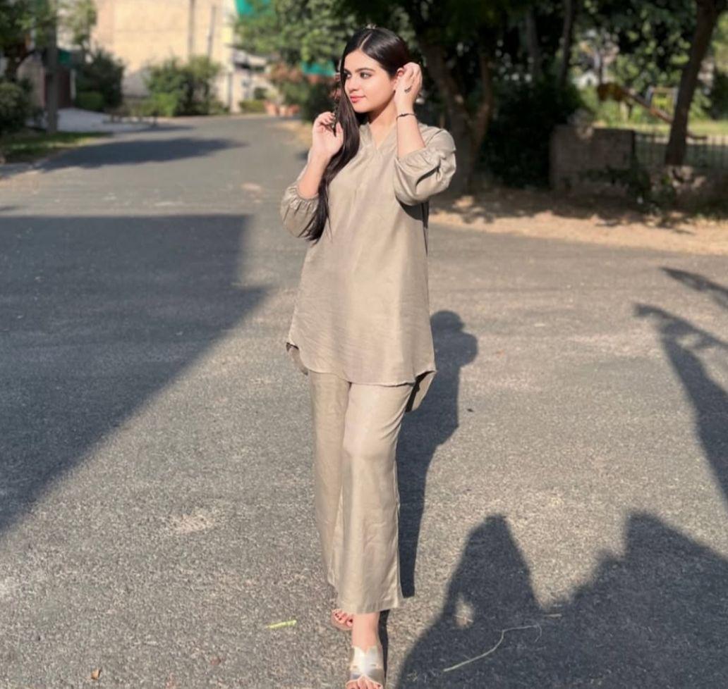 Stylish Women's Stitched Co-Ord Set - 2 Pcs in Elegant Beige with Plain Cotton Fabric